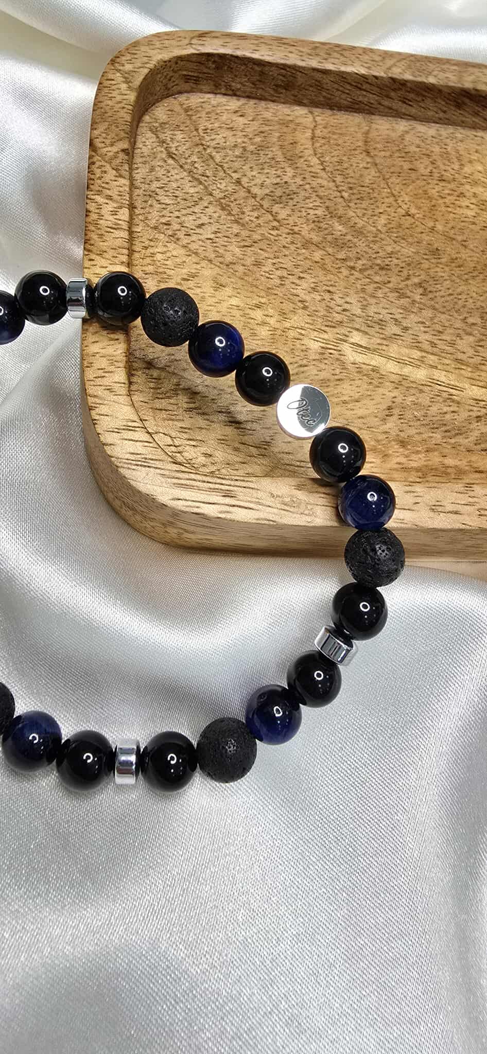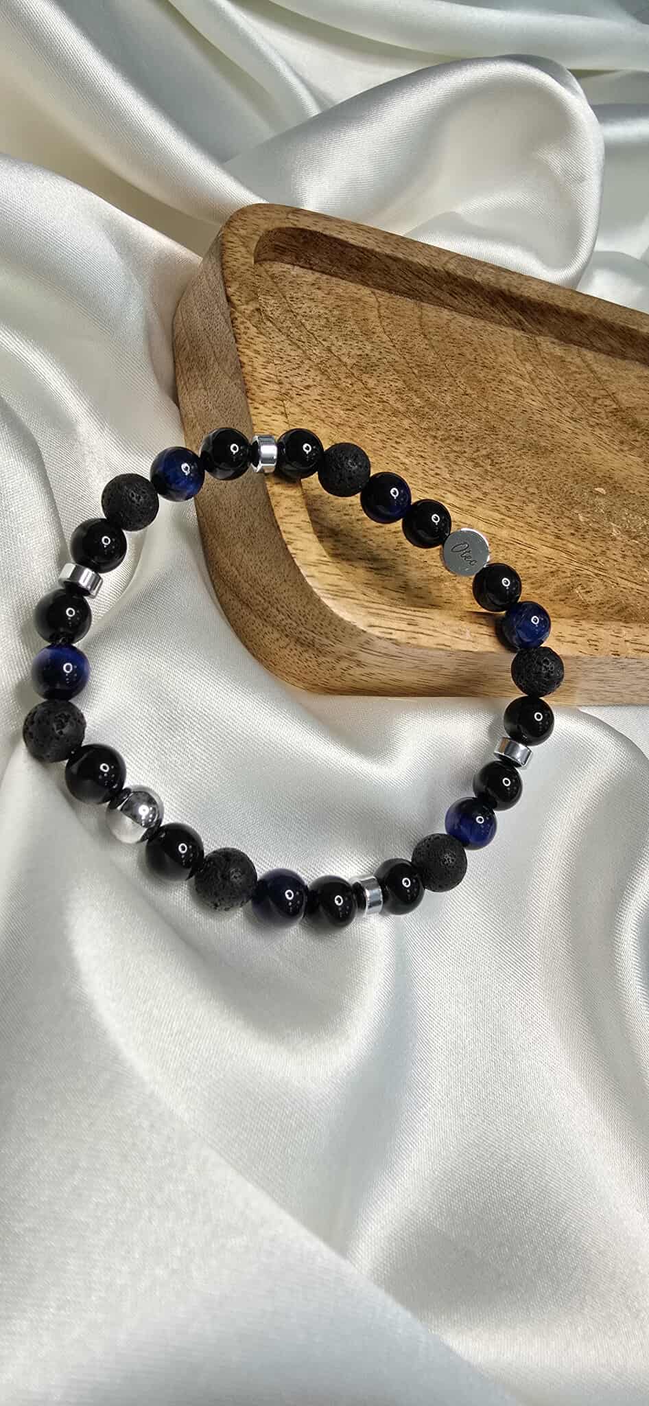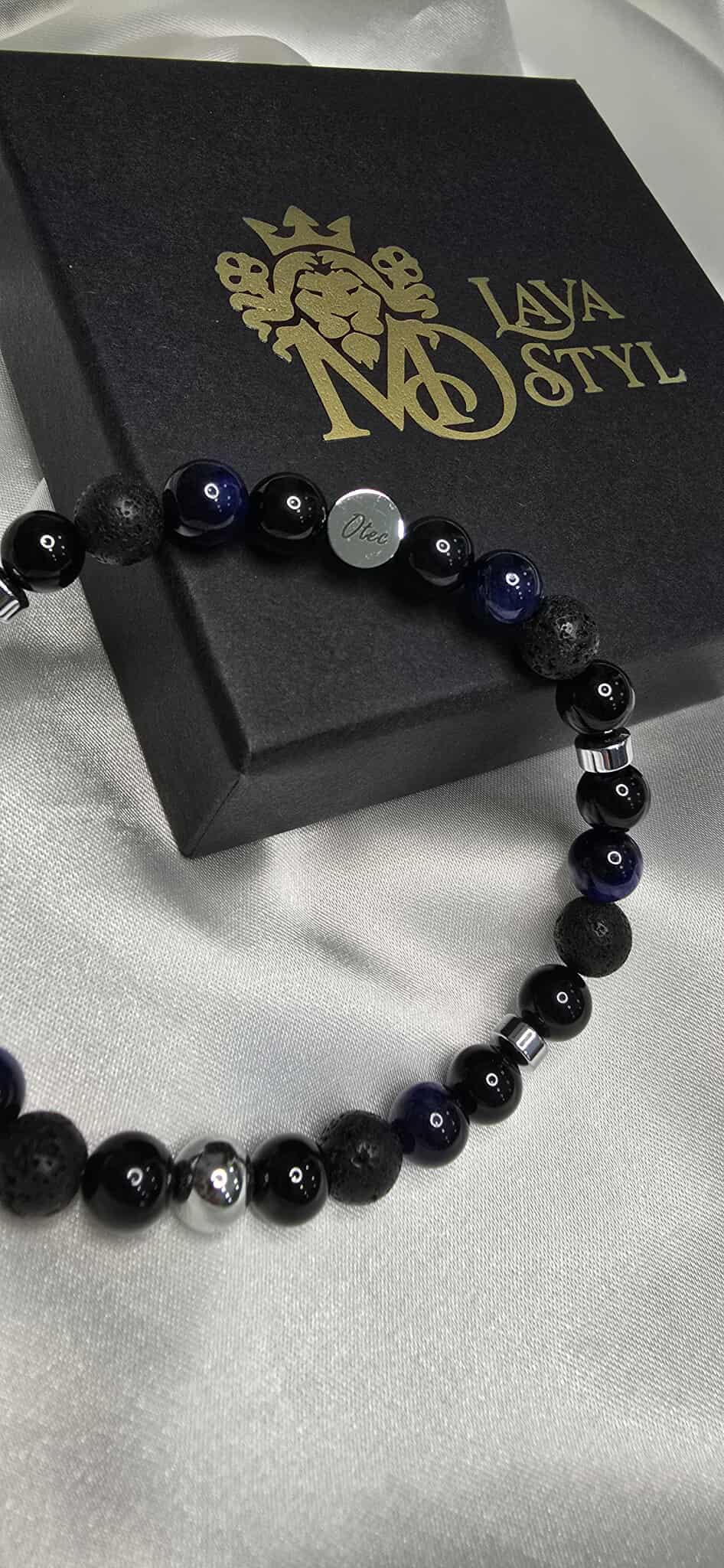 Pánsky náramok Father’s Power je poctou mužskej sile, odvahe a ochrane. Spája energiu štyroch výnimočných minerálov – tigrieho oka, onyxu, lávového kameňa a hematitu – ktoré spoločne vytvárajú harmóniu stability, sily a vytrvalosti.