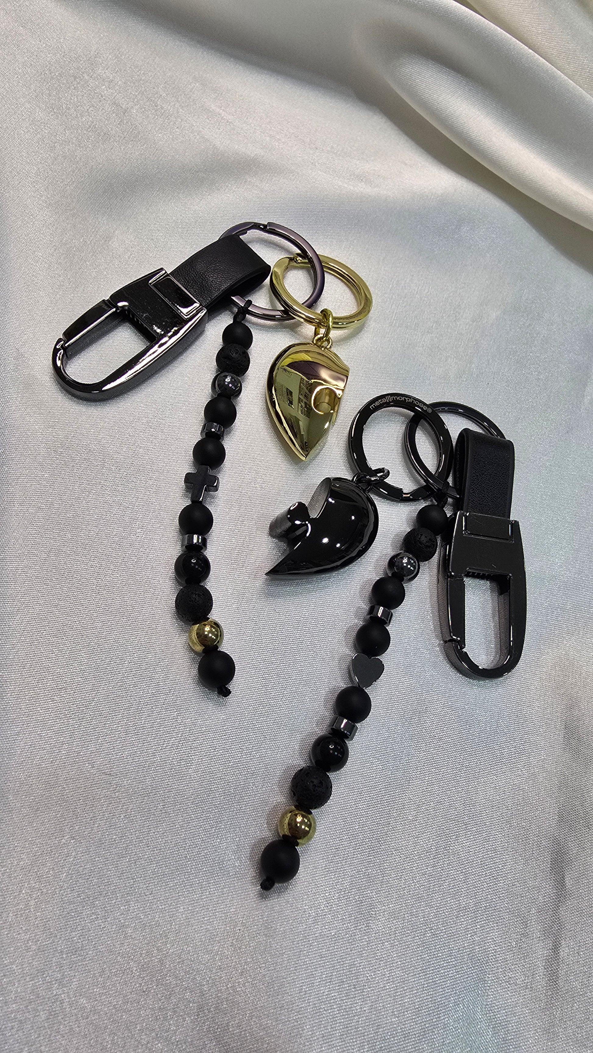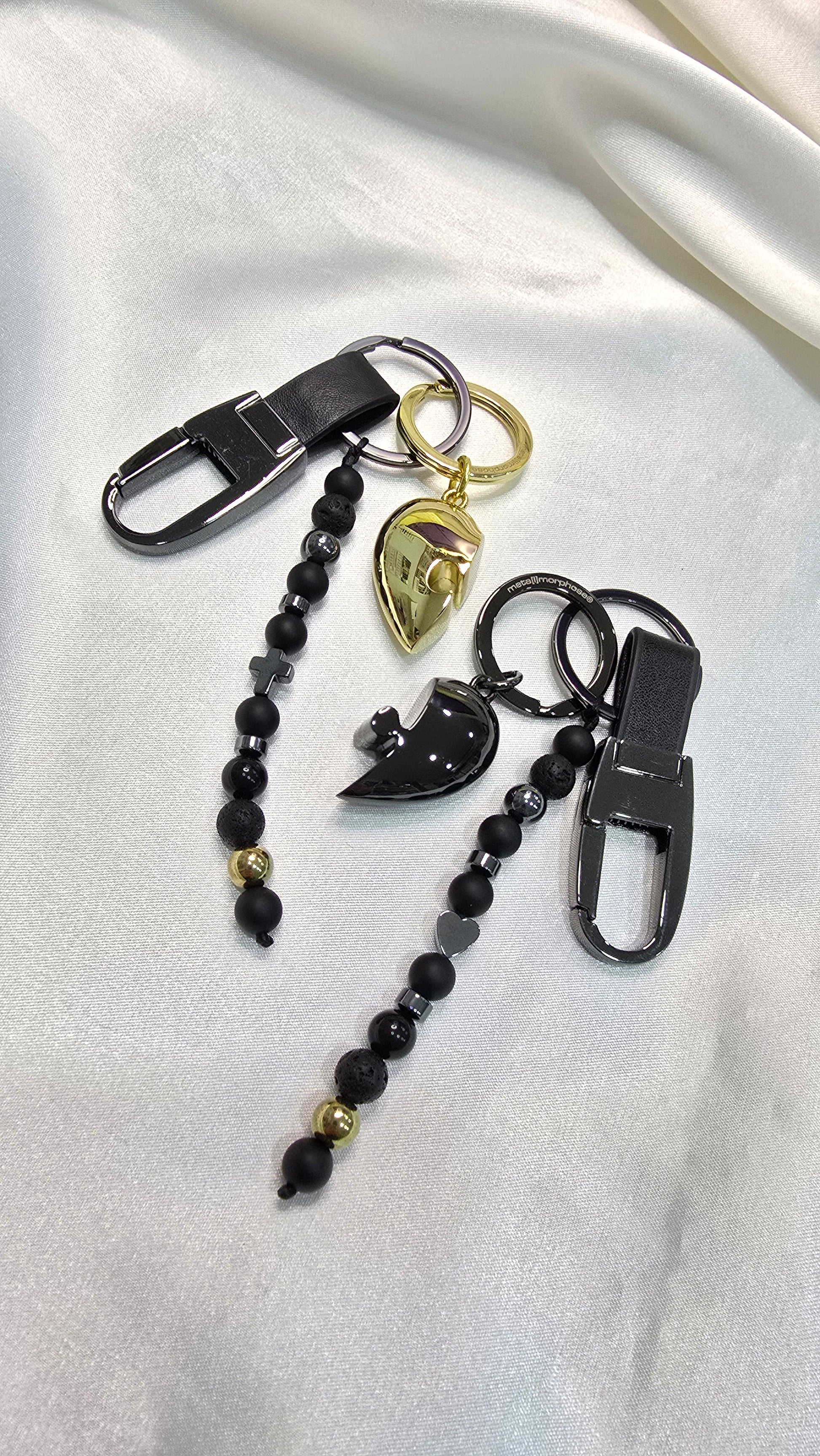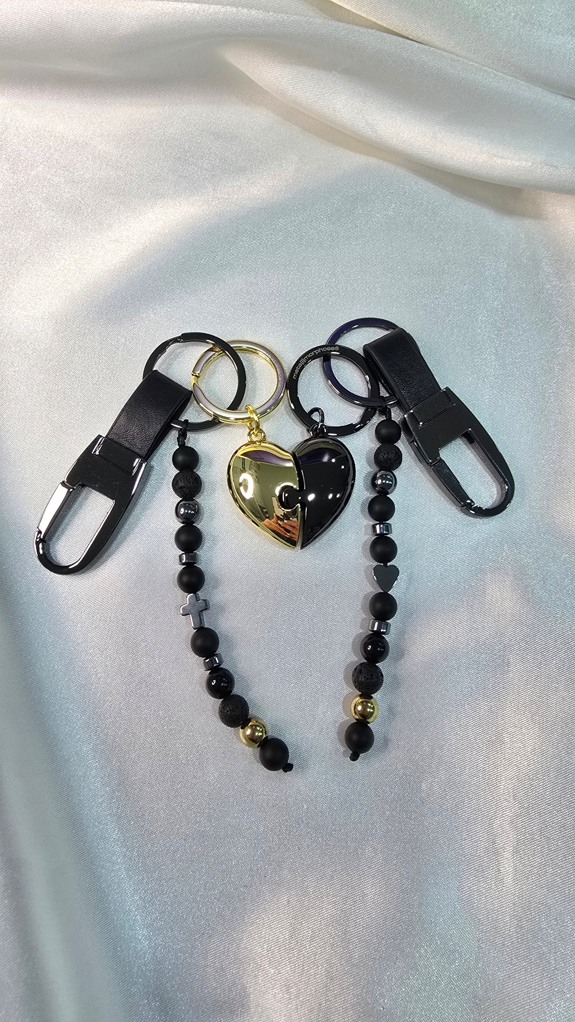Dve polovice jedného Srdca, jedna v odtieňoch luxusného zlata a druhá v elegantnej čiernej sa spájajú v dokonalom súlade. Jedna polovica je doplnená symbolickým krížikom a druhá nežným srdcom, ktoré dodávajú tomuto jedinečnému šperku hĺbku a osobitý význam. Vyrobené z kvalitného kovu, tieto prívesky sú nielen krásnym doplnkom, ale aj trvalým symbolom vašej nerozlučnej lásky.