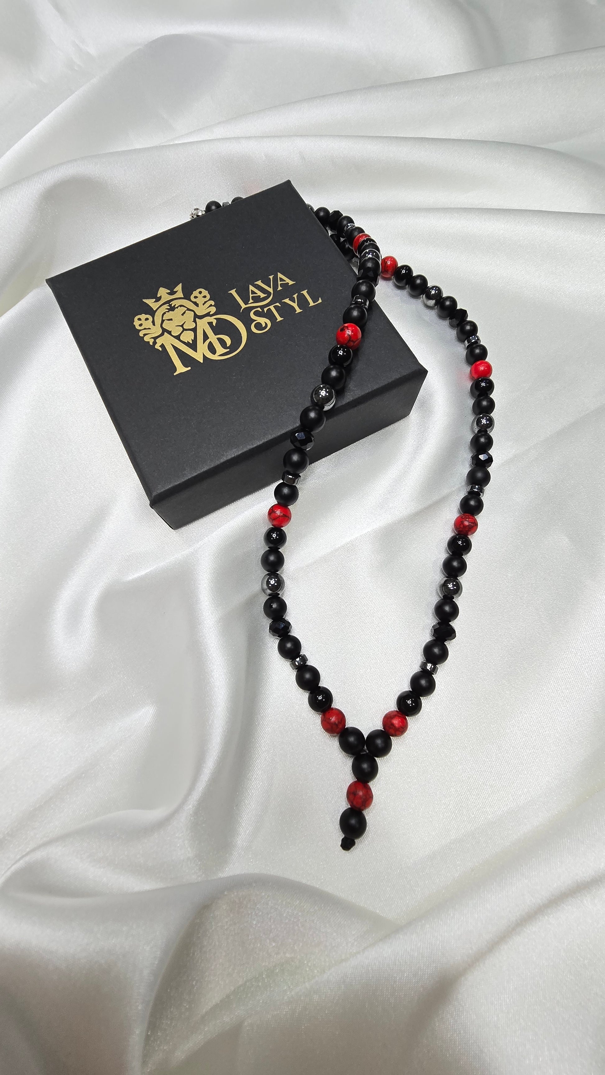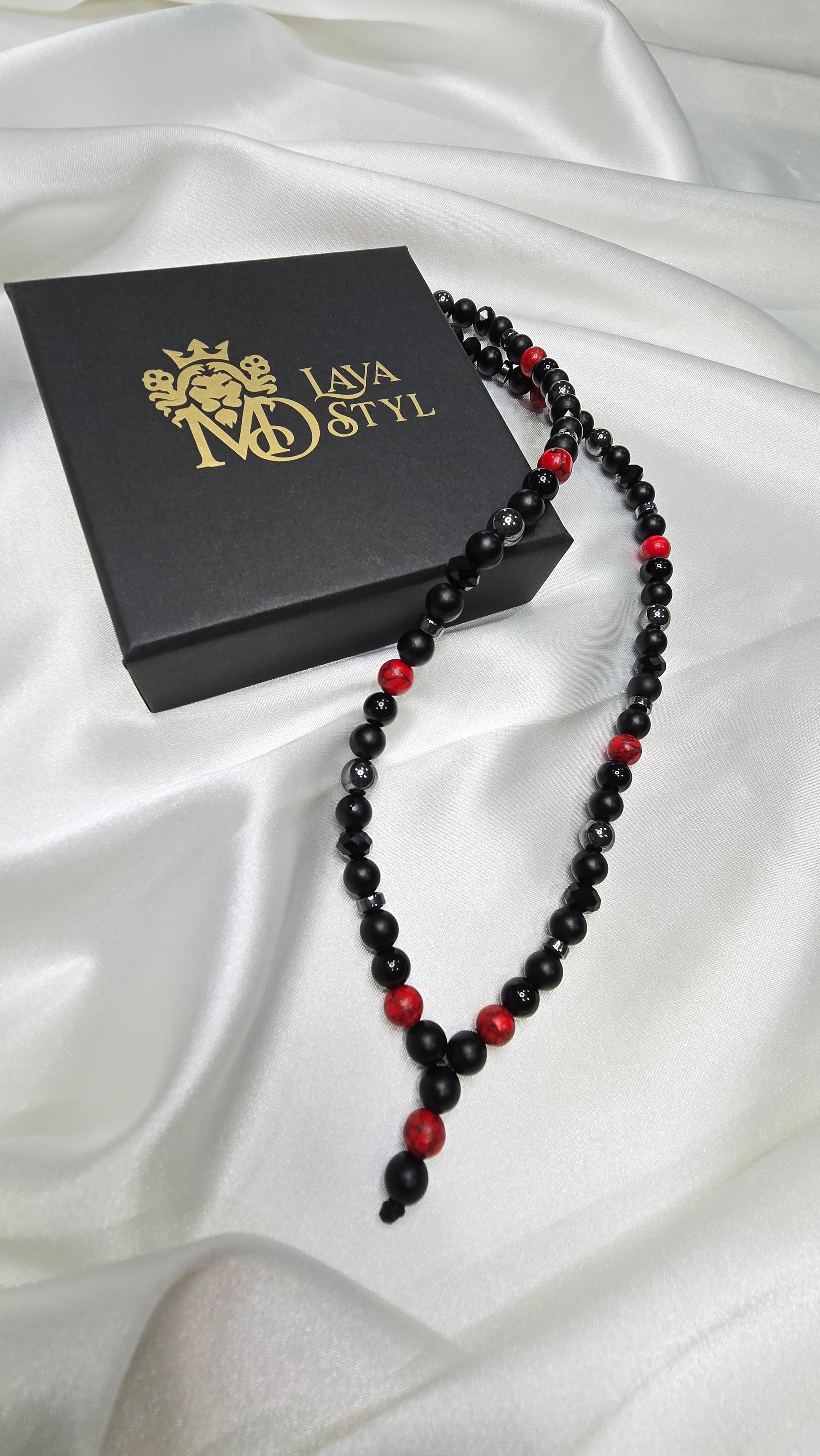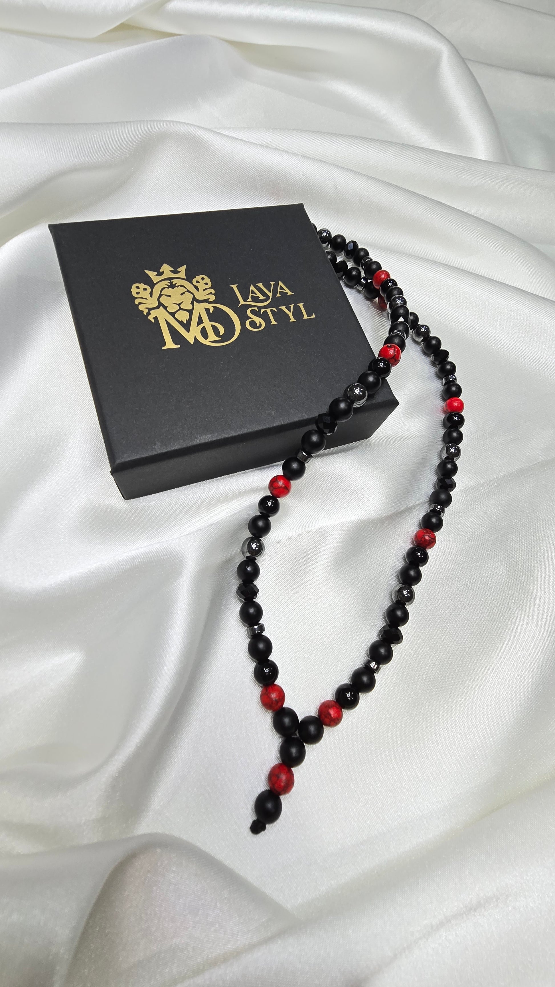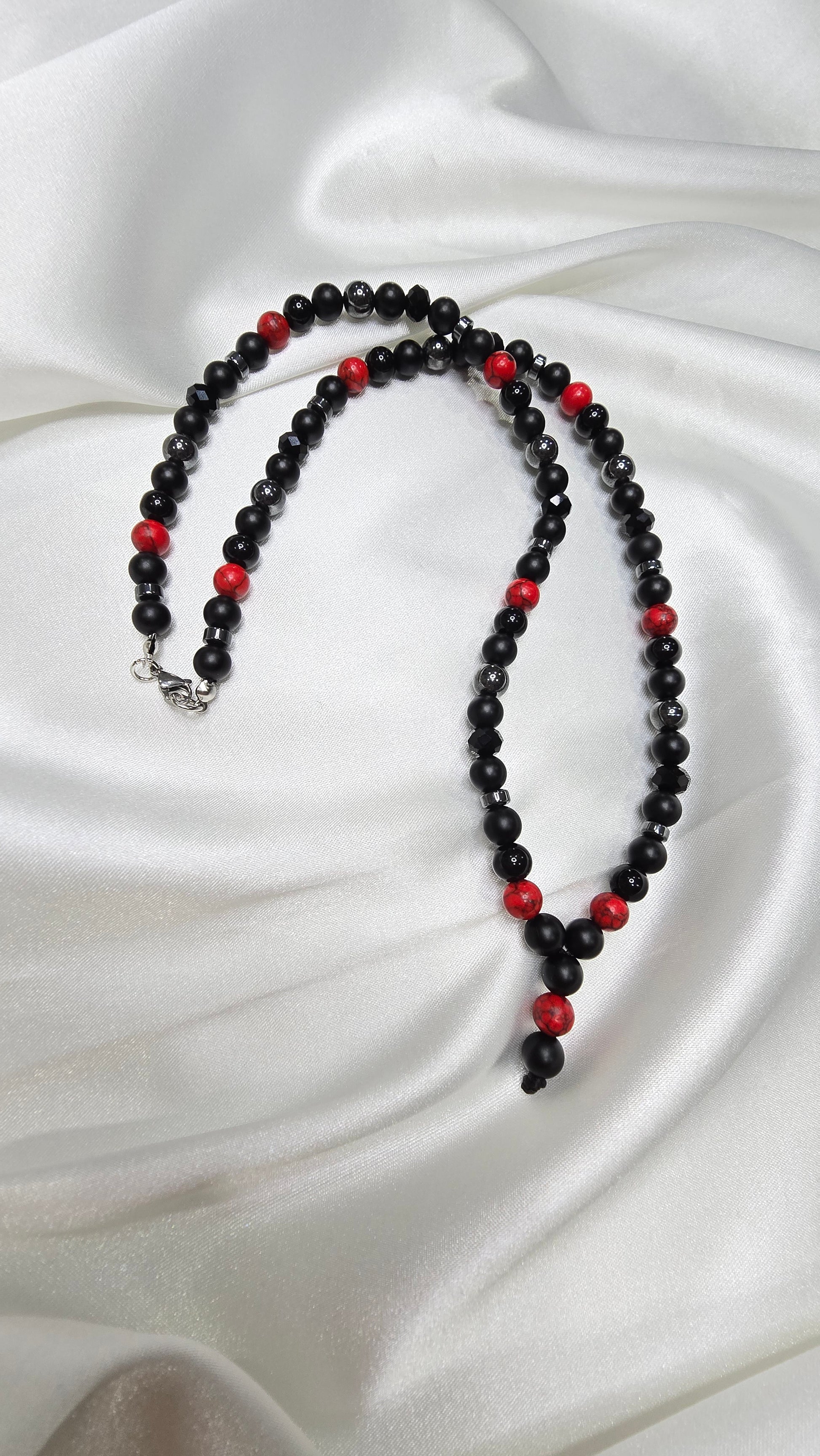 Energy Core – náhrdelník z červeného tyrkysu, onyxu a hematitu. Symbolizuje energiu, vnútornú silu a rovnováhu. Vhodný pre ženy aj mužov.
