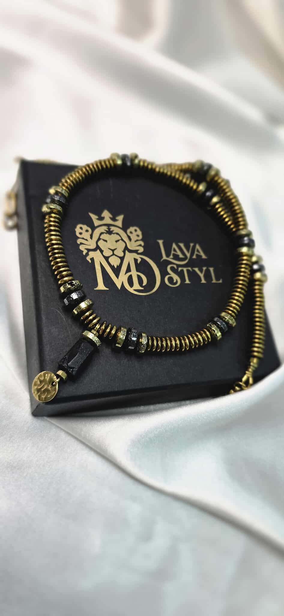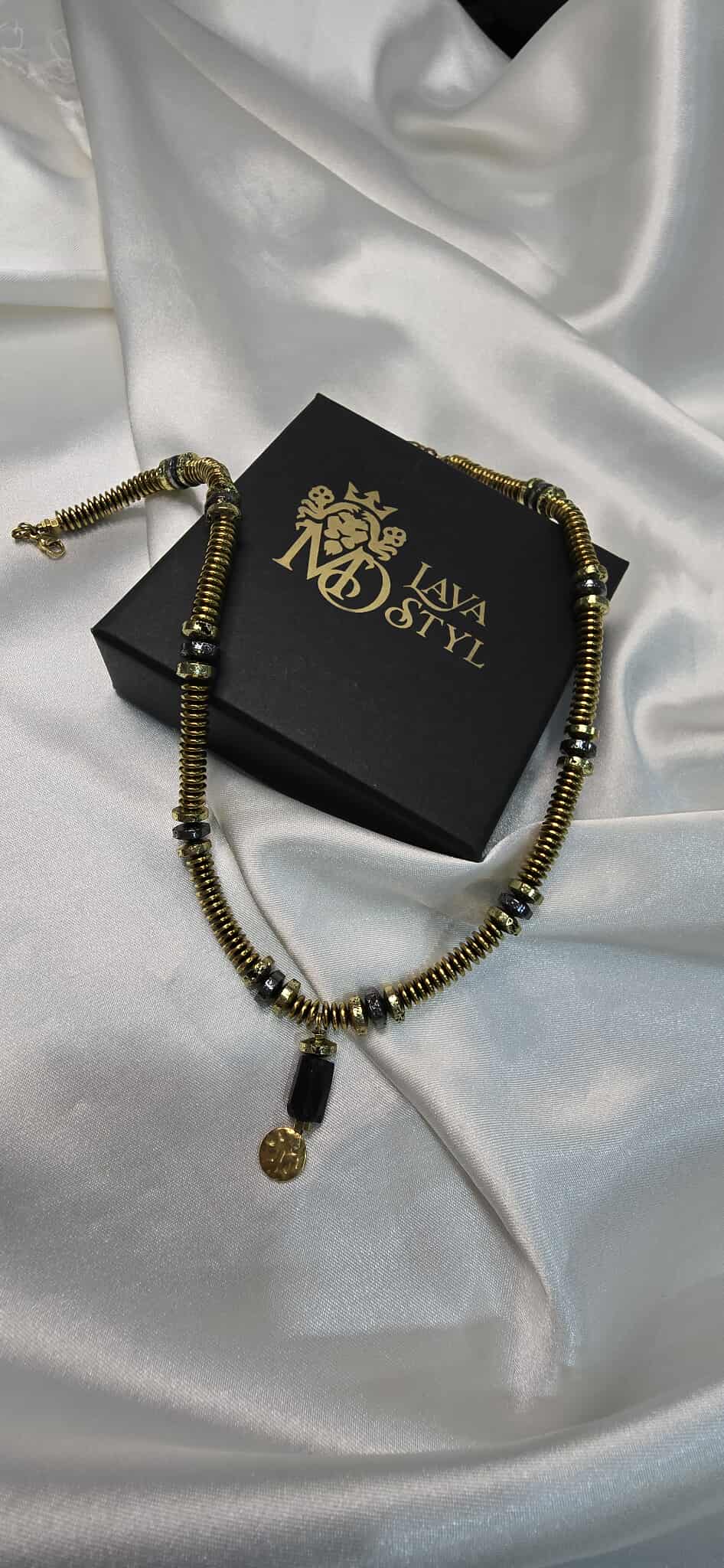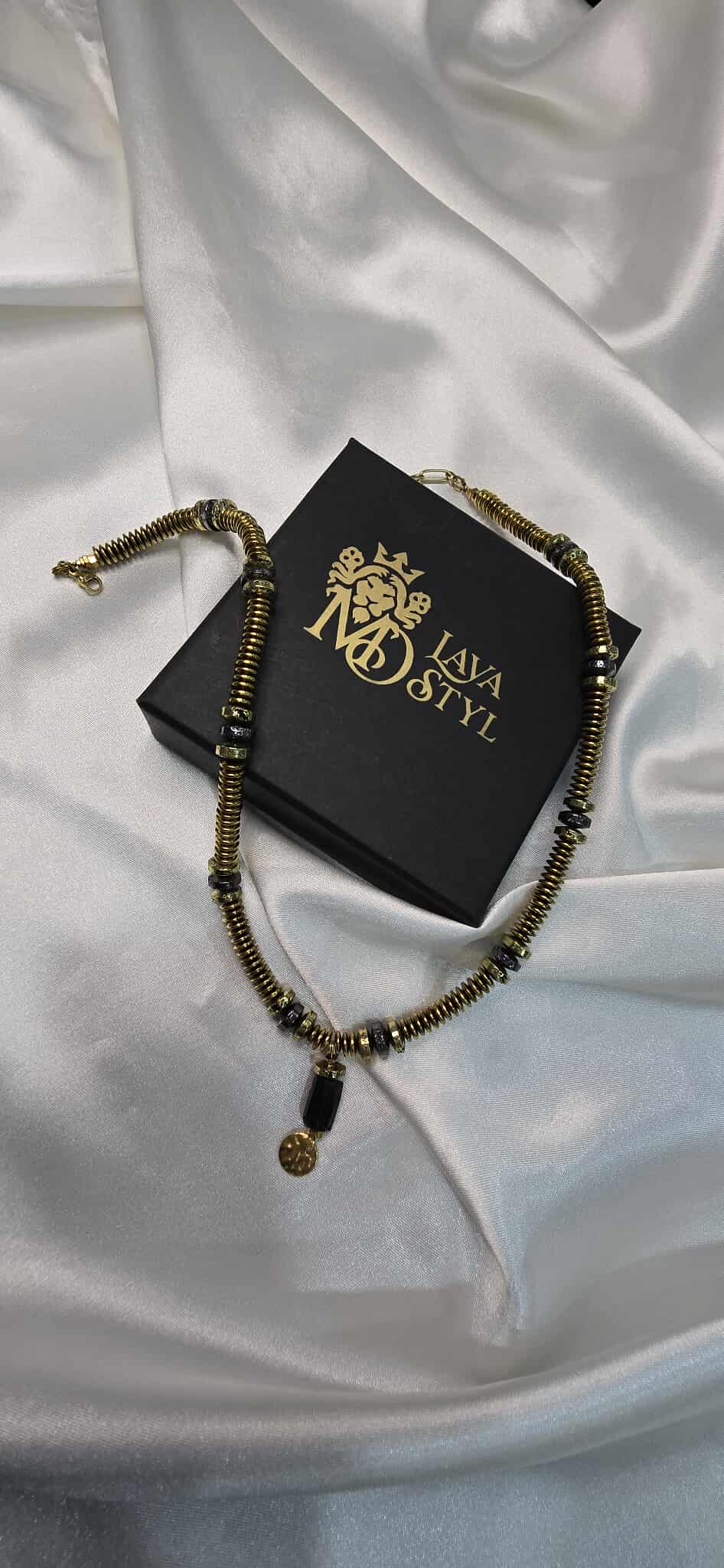 Elegantný, mystický a plný energie – náhrdelník Queen of Shadows je vyrobený z hematitu, lávového kameňa a turmalínu, ktoré pôsobia ako ochranný amulet a zároveň štýlový doplnok.