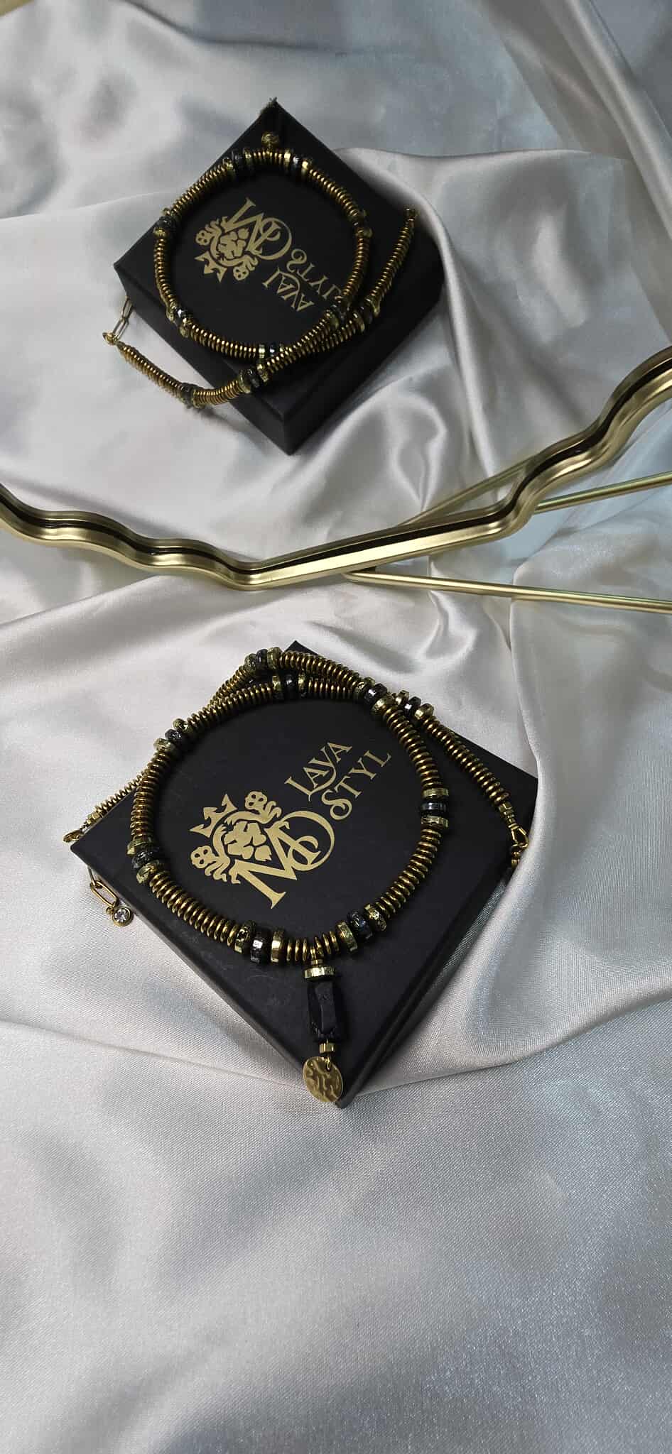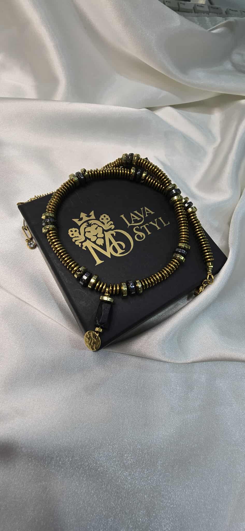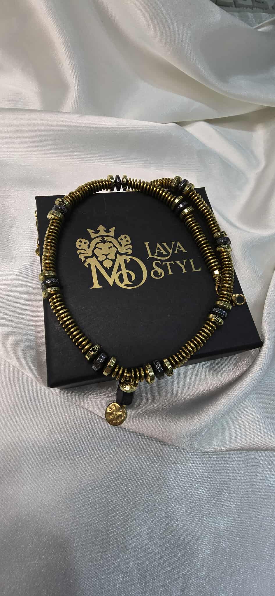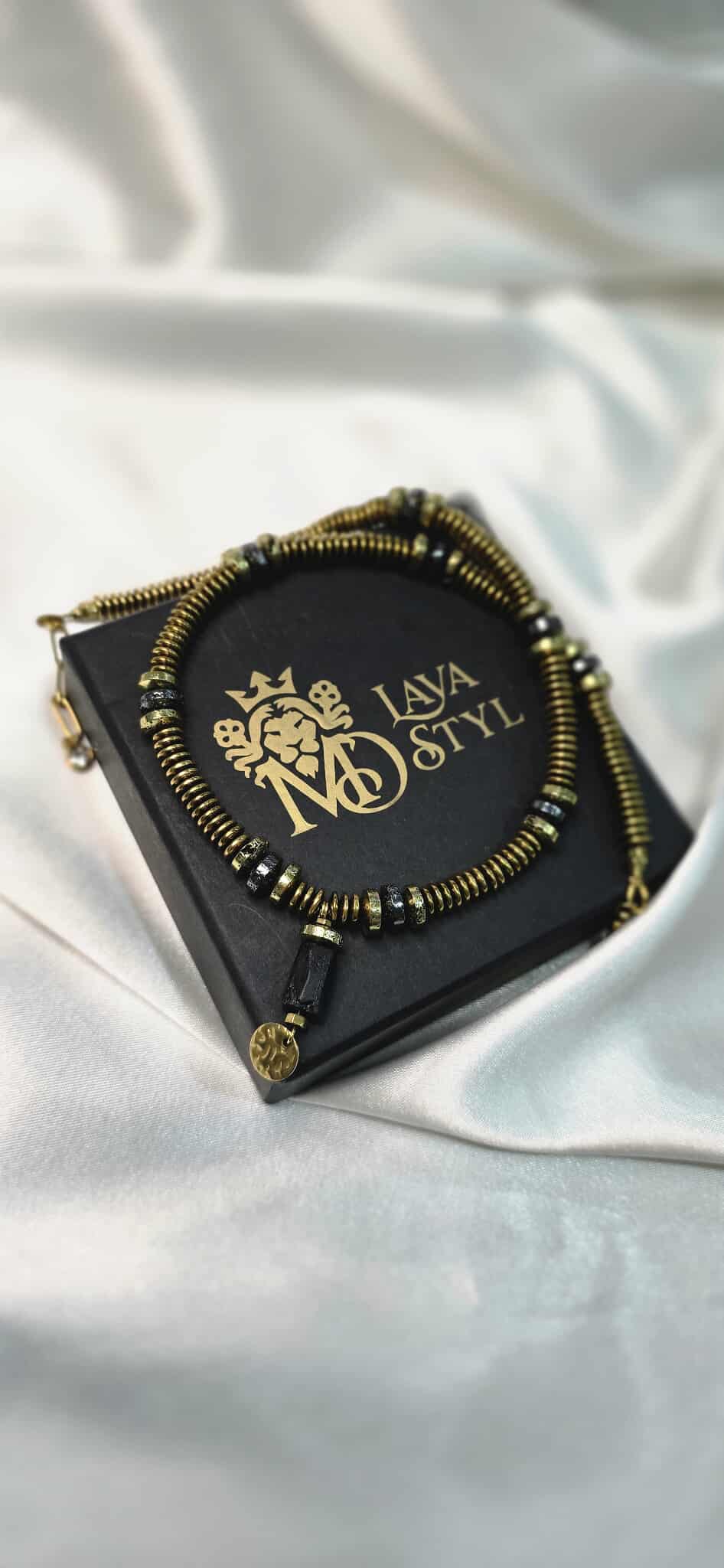 Elegantný, mystický a plný energie – náhrdelník Queen of Shadows je vyrobený z hematitu, lávového kameňa a turmalínu, ktoré pôsobia ako ochranný amulet a zároveň štýlový doplnok.