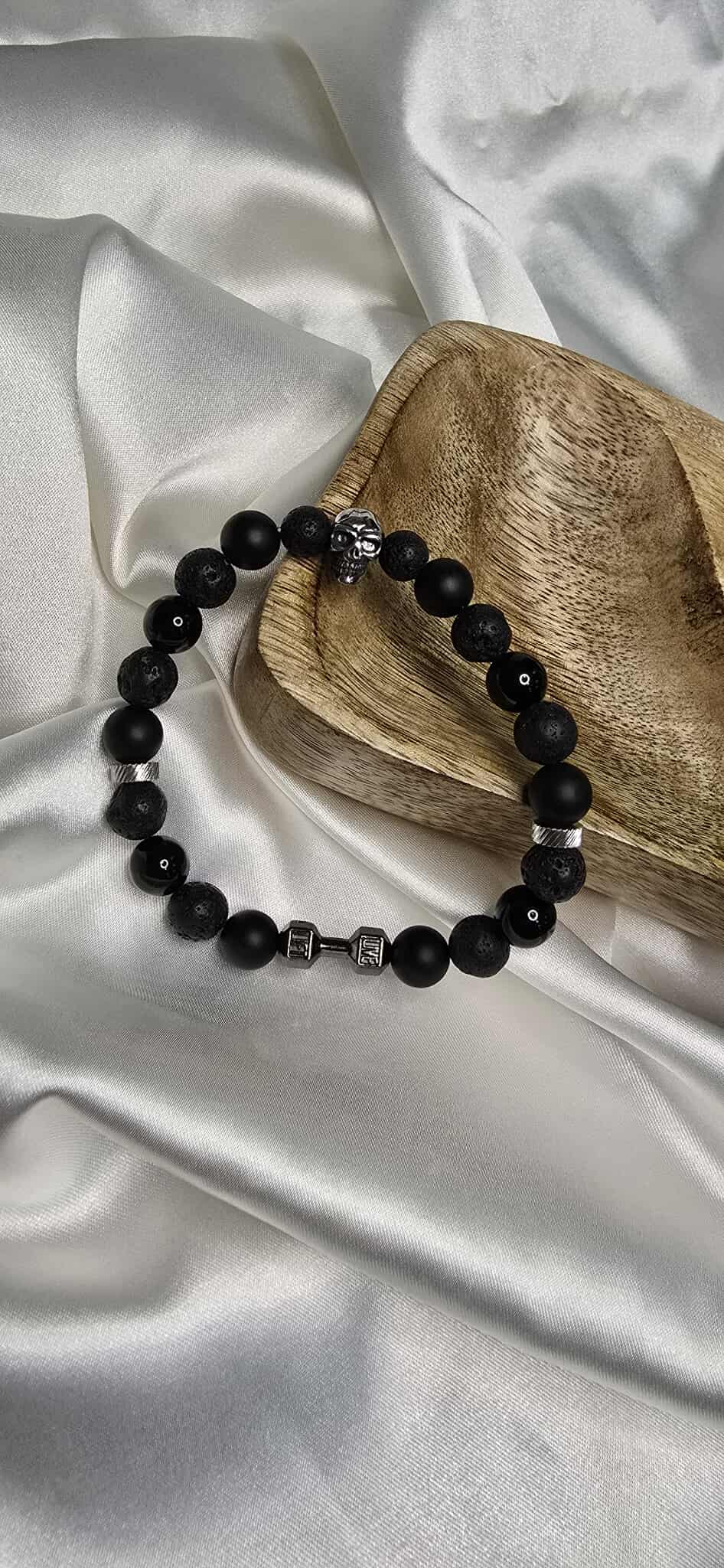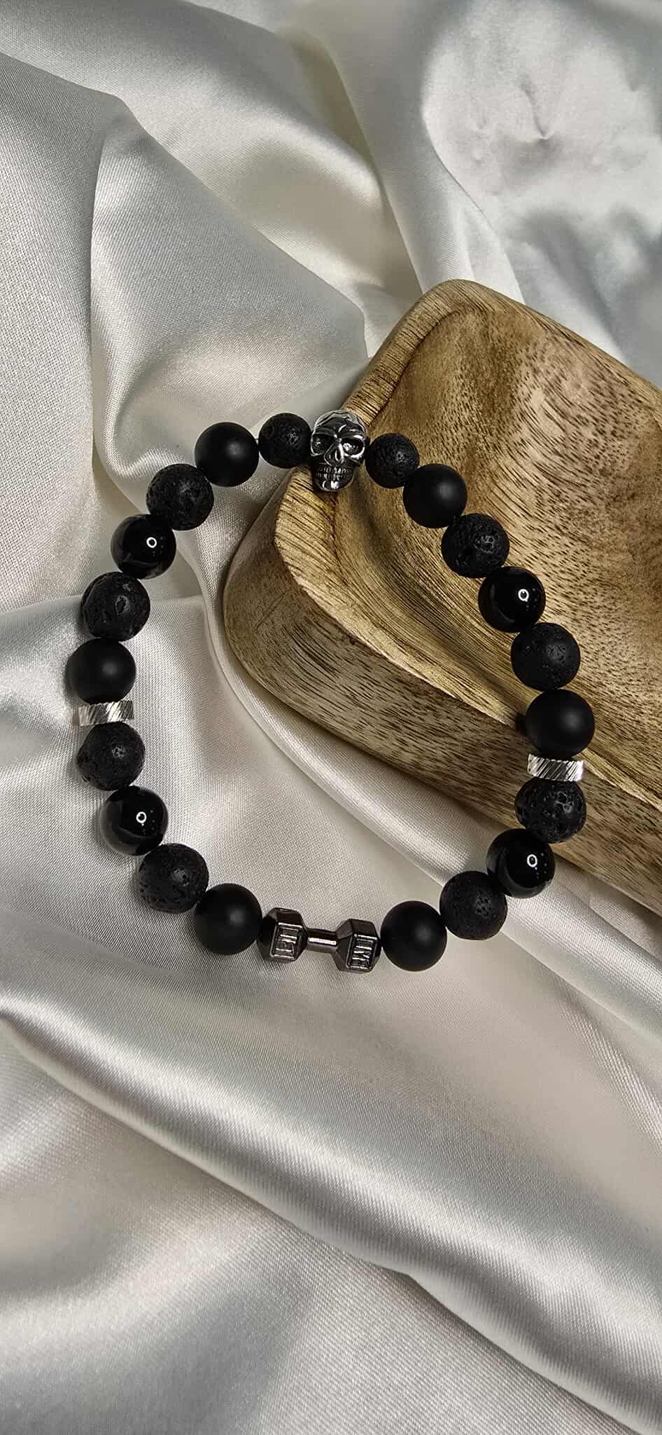 Pánsky náramok Warrior’s Strength je symbolom vnútornej sily, rovnováhy a odhodlania. Kombinuje lávový kameň a onyx s priemerom 10 mm – dva minerály, ktoré spájajú zemskú energiu s duševnou stabilitou.
