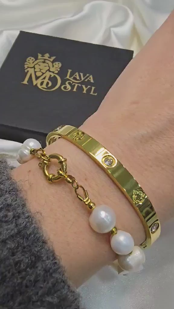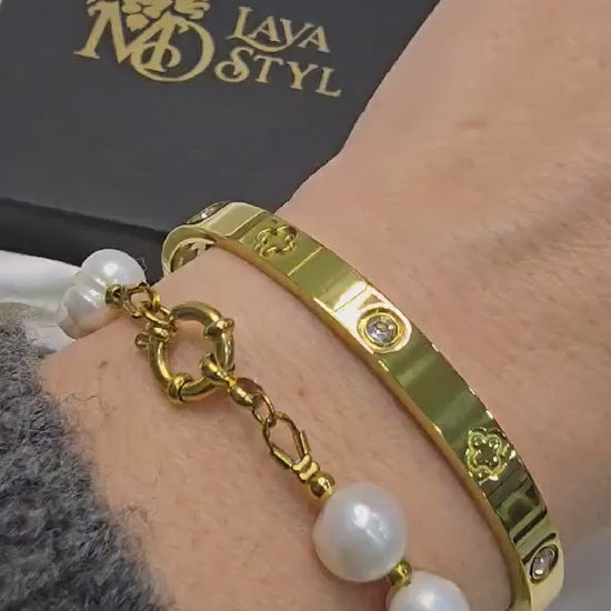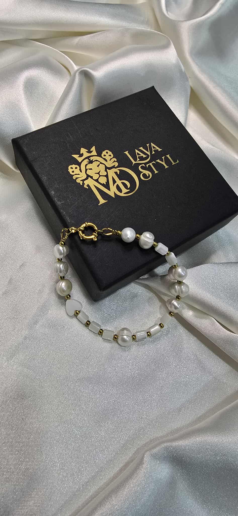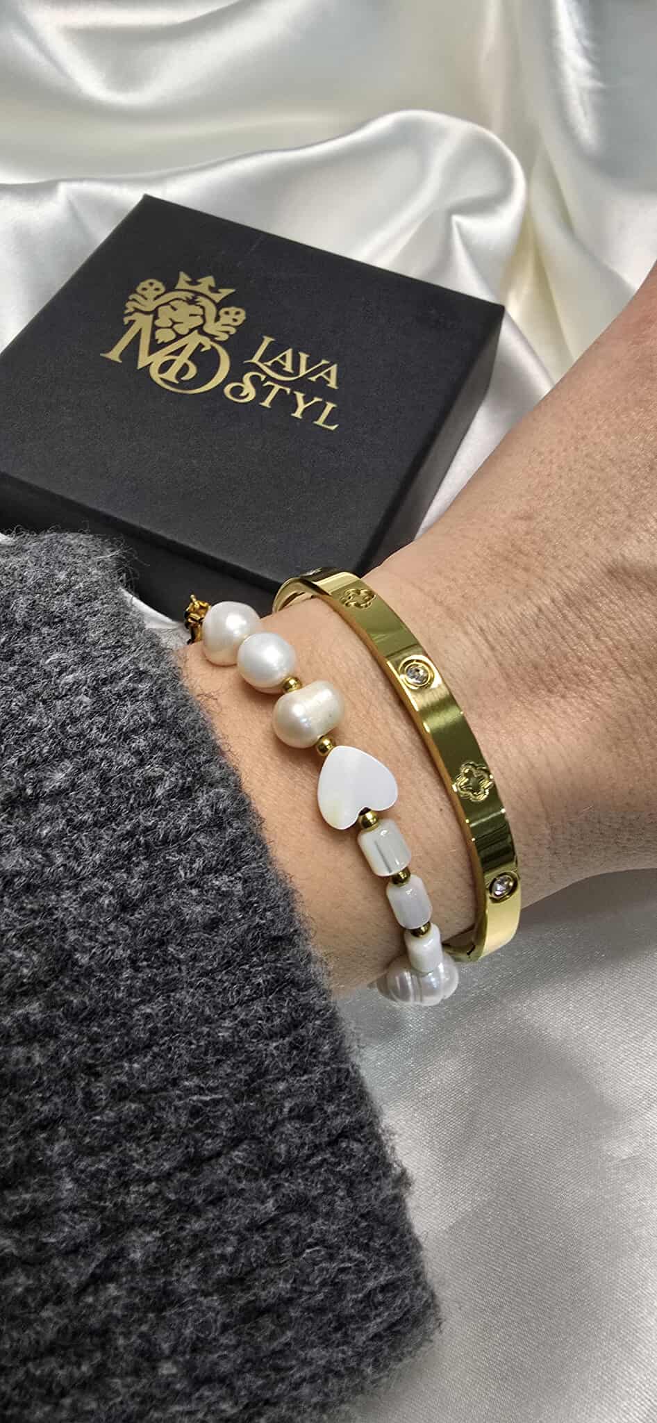 Náramok z perál – zlatá edícia Jemný a prirodzene luxusný náramok vytvorený z pravých perál a mušľového elementu Perlete, ktorý dodáva šperku nádych leta, slobody a dotyk mora. Každá perla je jedinečná, rovnako ako žena, ktorá ju nosí – s vlastným leskom, príbehom a silou. Doplnený je o nerezové komponenty v zlatom prevedení, vďaka ktorým si zachová dlhú životnosť a krásny elegantný vzhľad. Ideálny na každodenné nosenie aj ako jemný doplnok k špeciálnym príležitostiam.