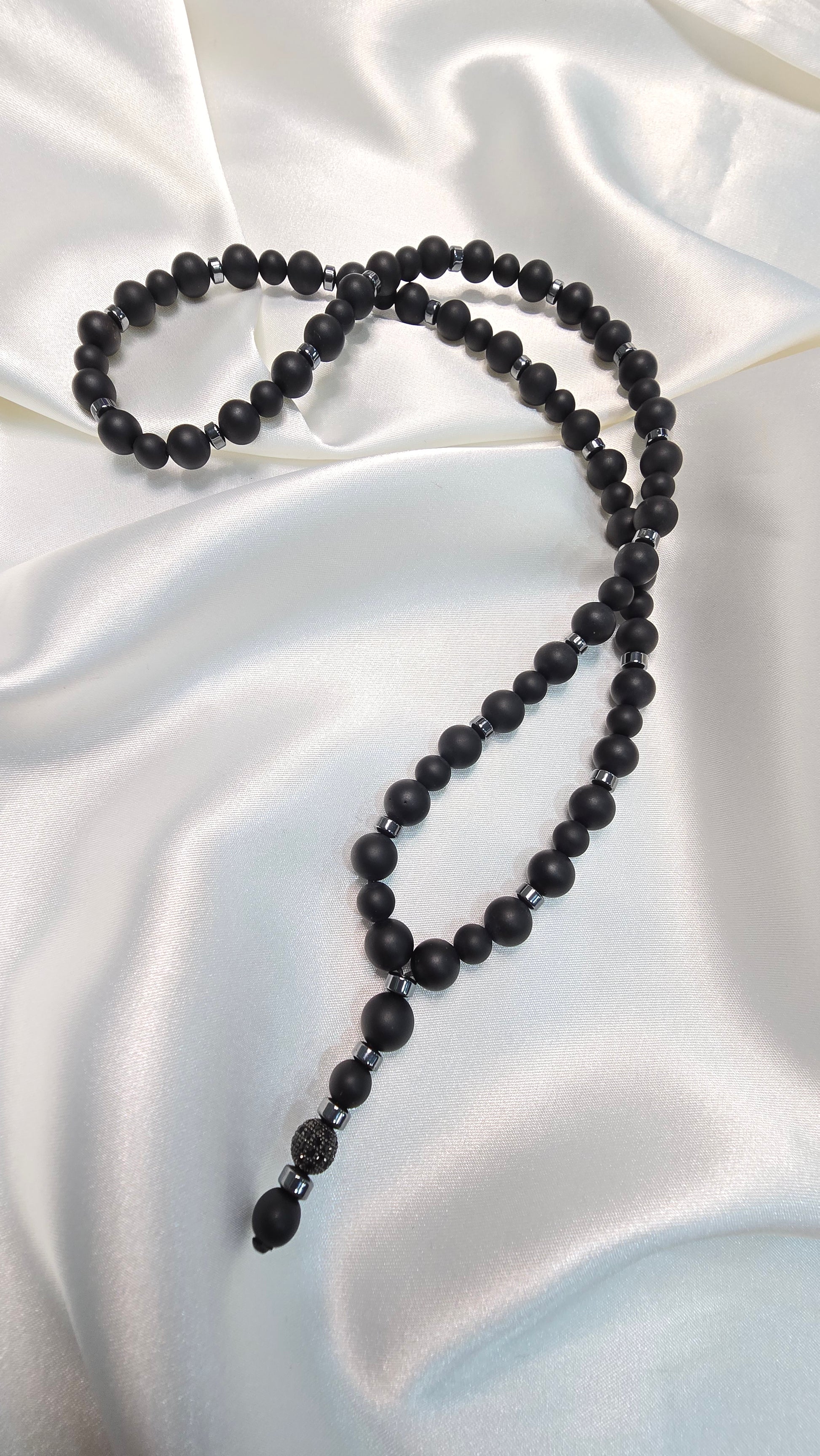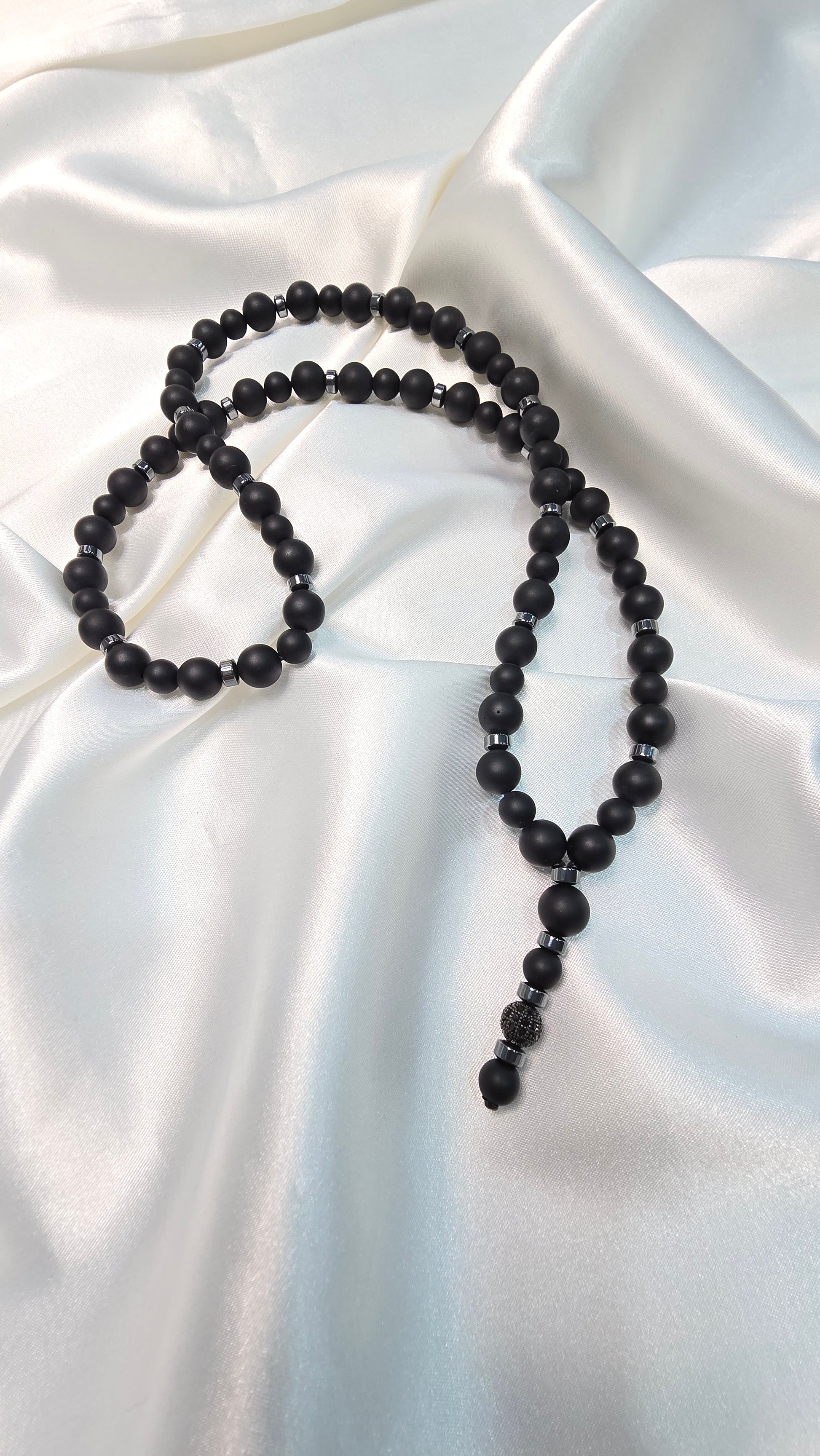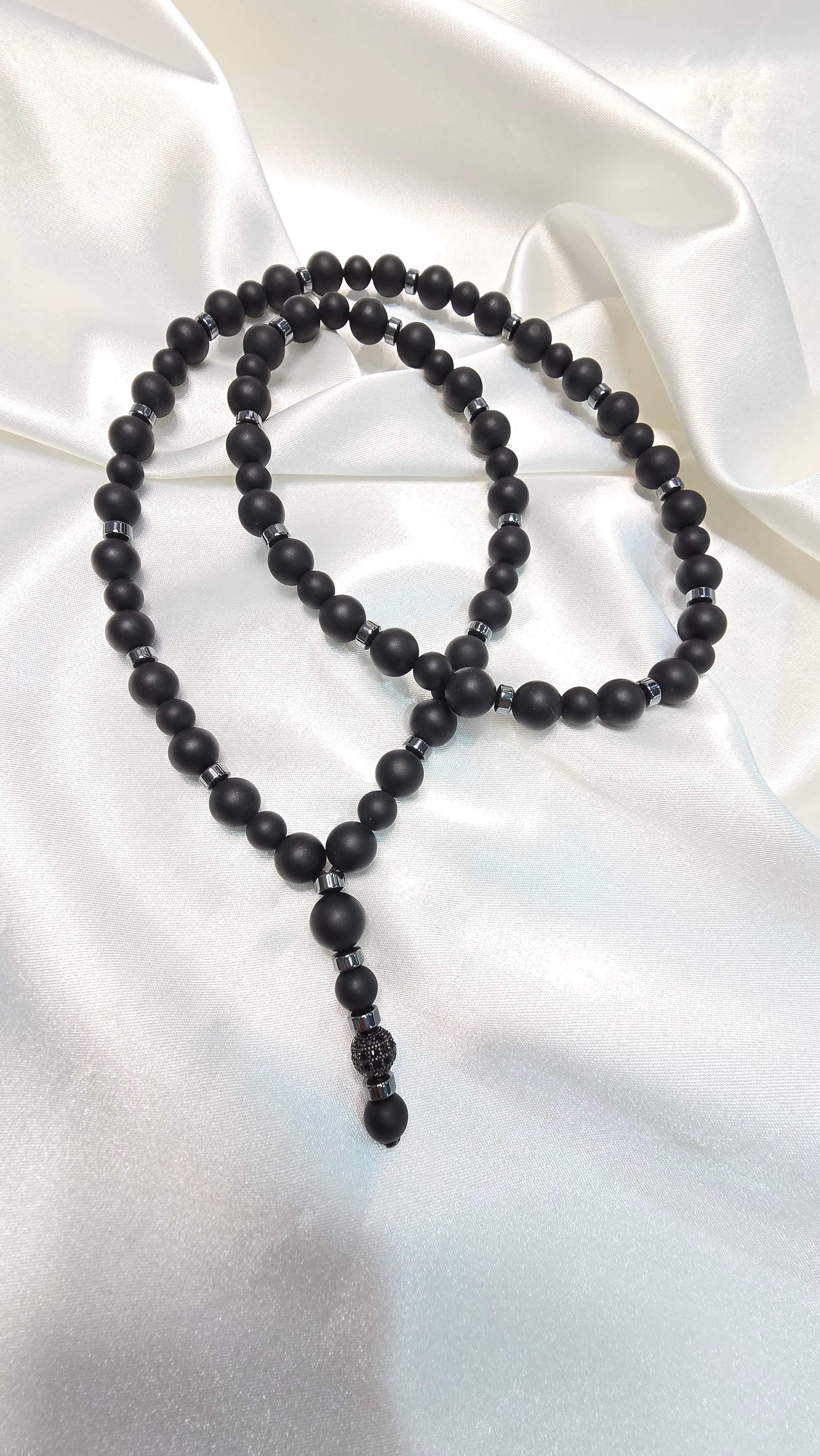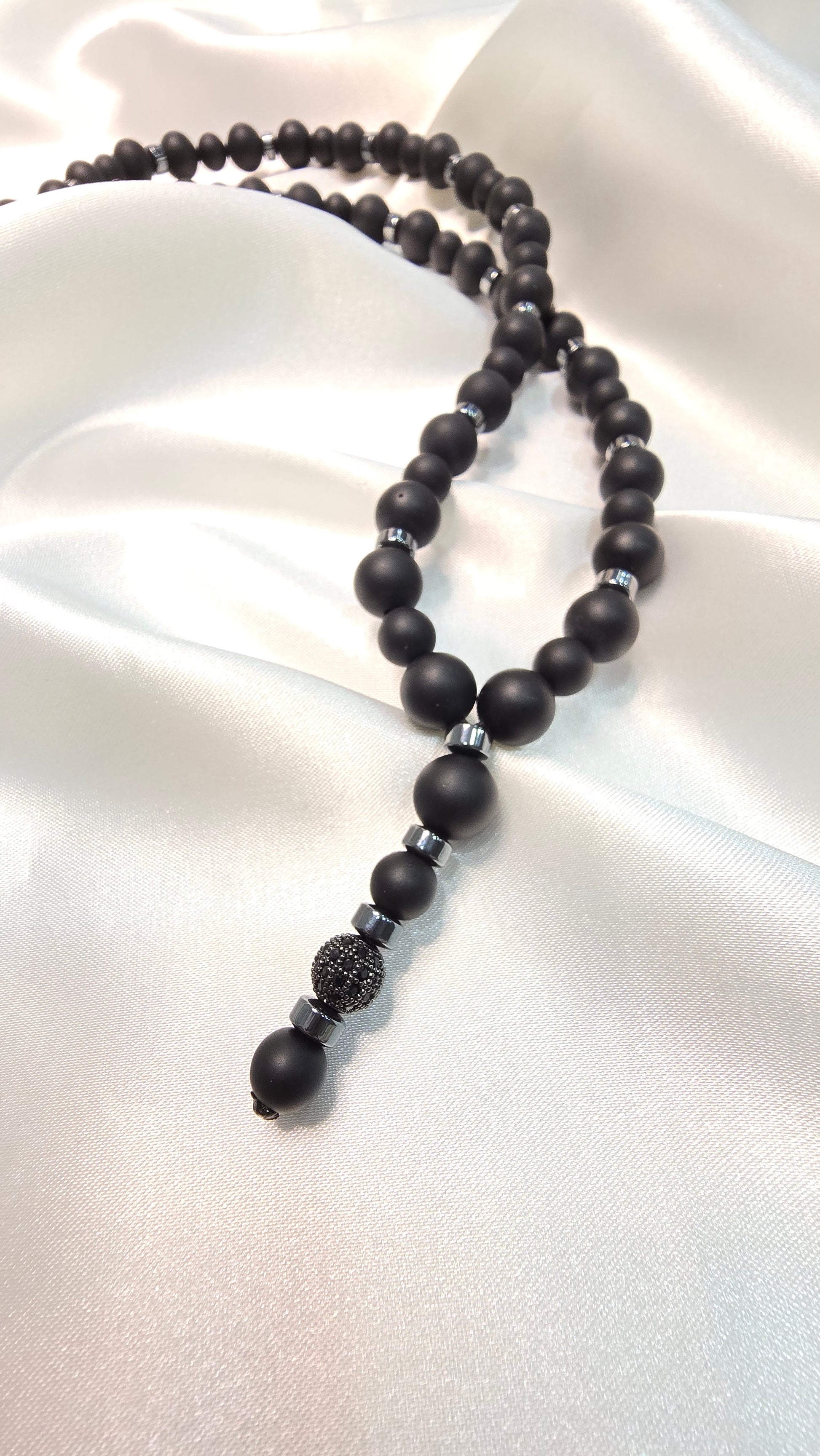 Elegantný náhrdelník z čierneho Ónyxu a Hematitu, ideálny pre každodenné nosenie aj špeciálne príležitosti. Ručne vyrobený s dôrazom na detail, tento náhrdelník dodá vášmu outfitu sofistikovaný vzhľad.